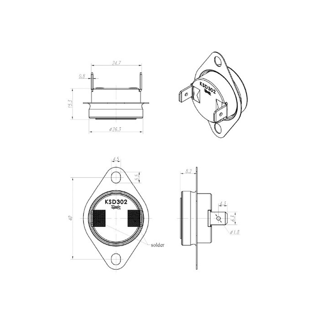 Termostato bimetálico de 3/4 com capacidade de suportar correntes de 25A em 220V ou 35A em 110V. Disponíveis no range de temperatura de 55/60°C com Flange de Fixação